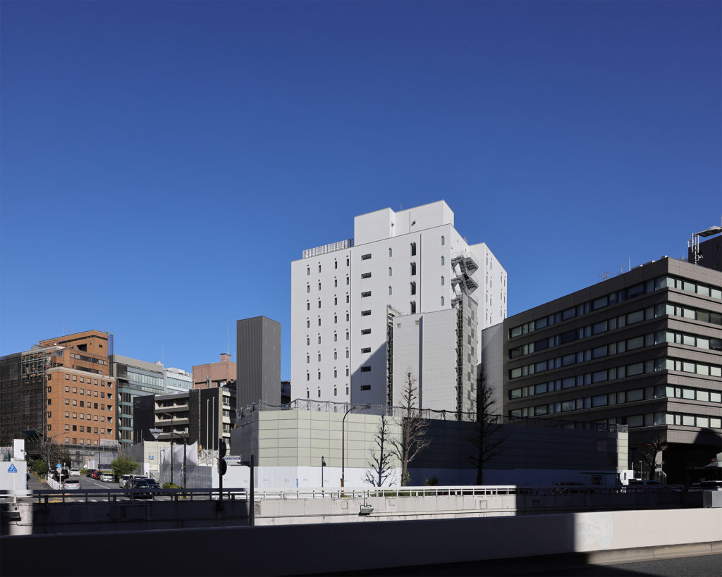 書庫棟と東南棟からなり、地上4階/地下8階建ての書庫棟は地下8階(B8FL=G.L.-27.600m)から地下1階までが収蔵能力750万冊を擁する書庫となっている。