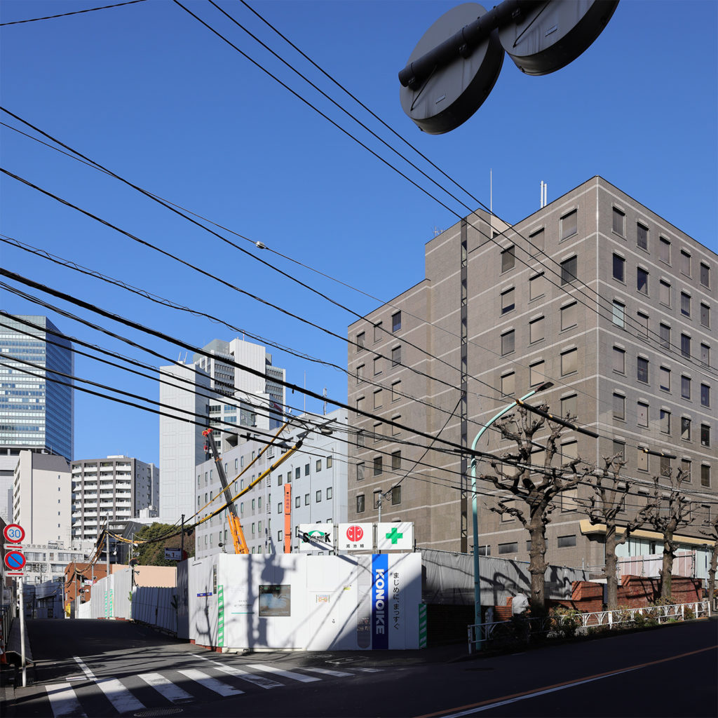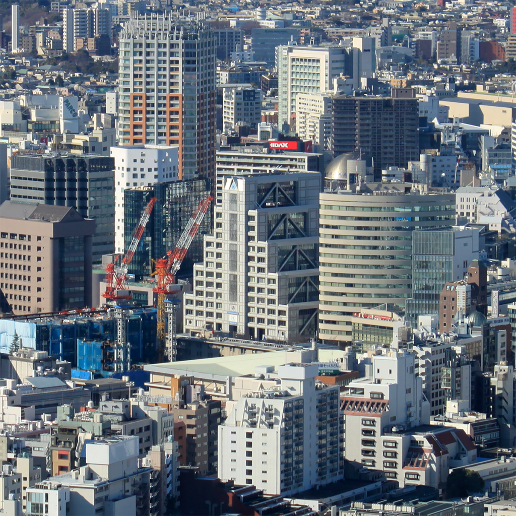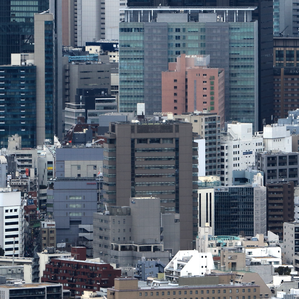 全天候型ビル自動建設システム「あかつき21」によって建設された高層ビル。