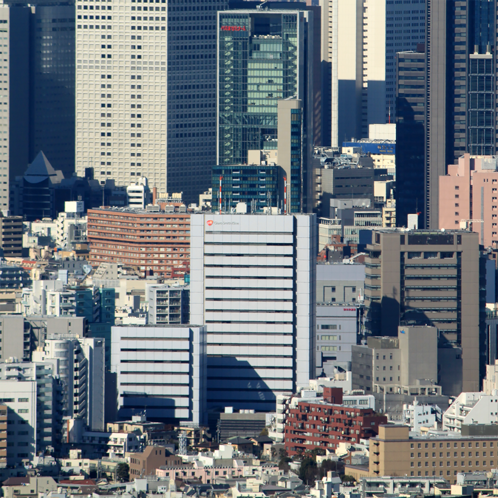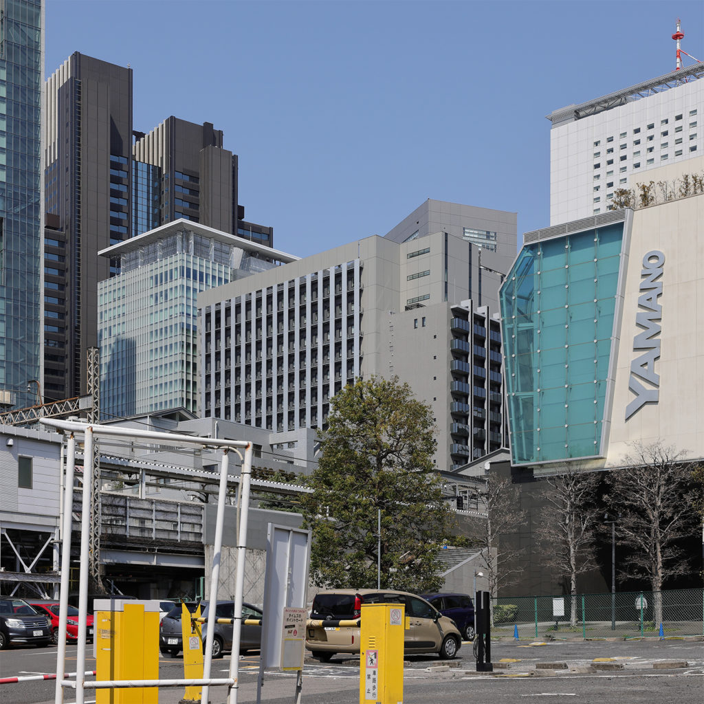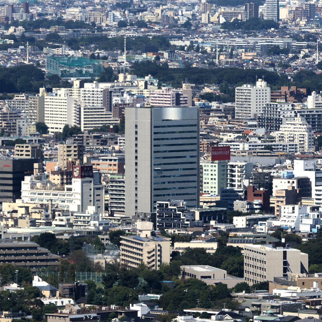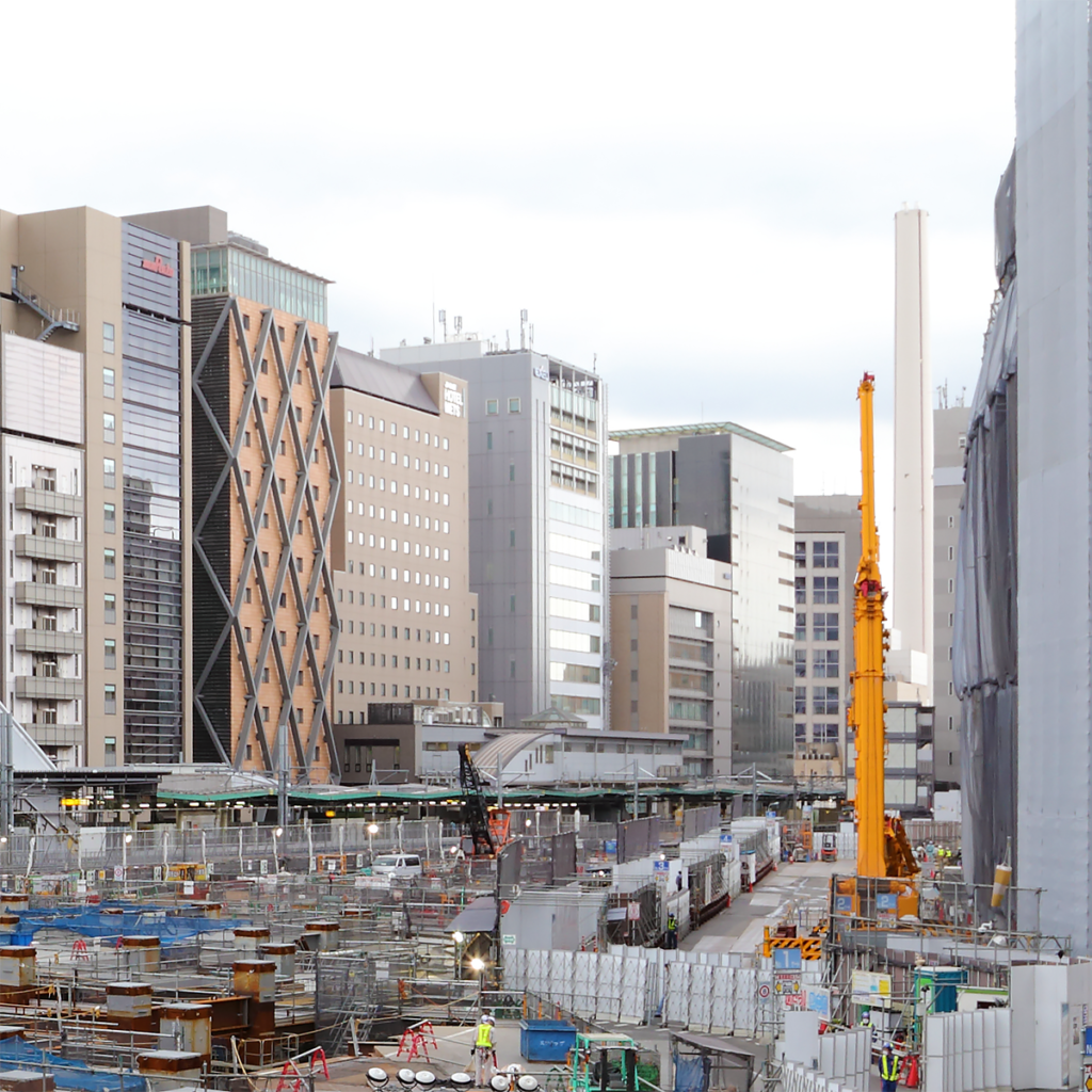 全天候型ビル自動建設システム「あかつき21」によって建設された高層ビル。