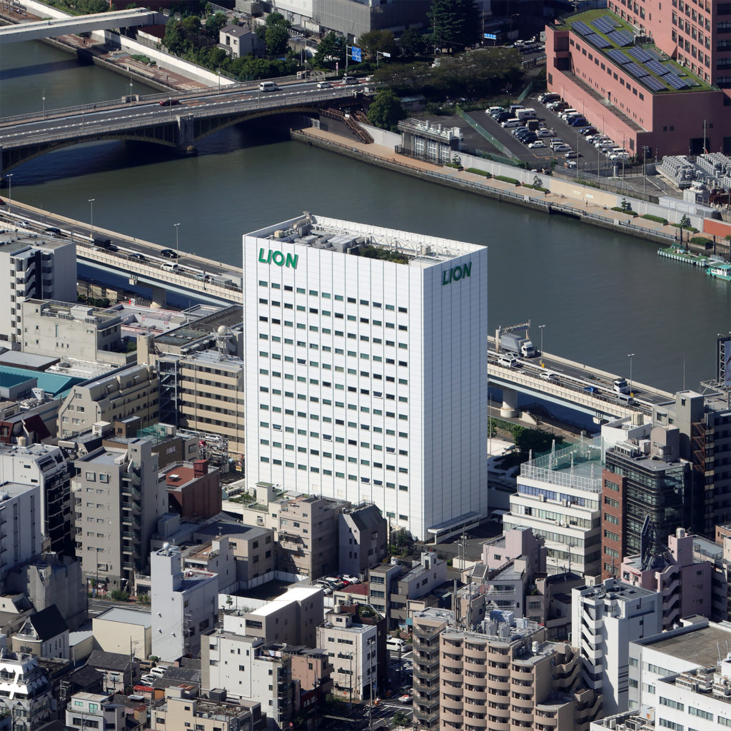 大手生活用品メーカー・ライオン株式会社の旧・東京本社社屋。ライオン本社は2023年4月に蔵前JPテラスのオフィス棟「JPライオンビルディング」へ移転しており、跡地は(仮称)墨田区本所1丁目計画として再開発が予定されている。